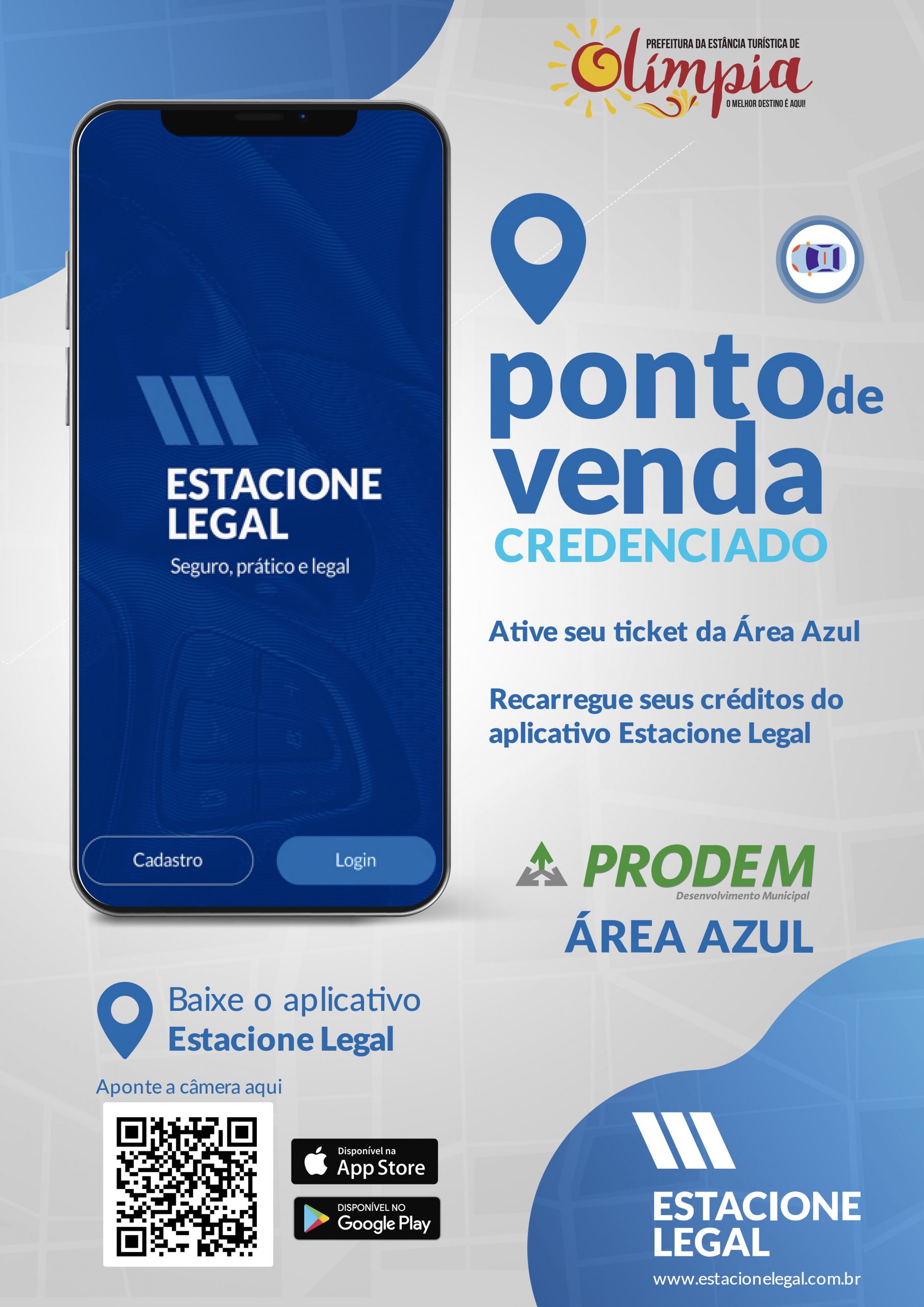 Os usuários do estacionamento rotativo “ÁreaAzul” agora contam com uma ferramenta moderna e prática. Isso porque, a Prefeiturada Estância Turística de Olímpia e a Prodem estão implantando o aplicativo “Estacione Legal”.